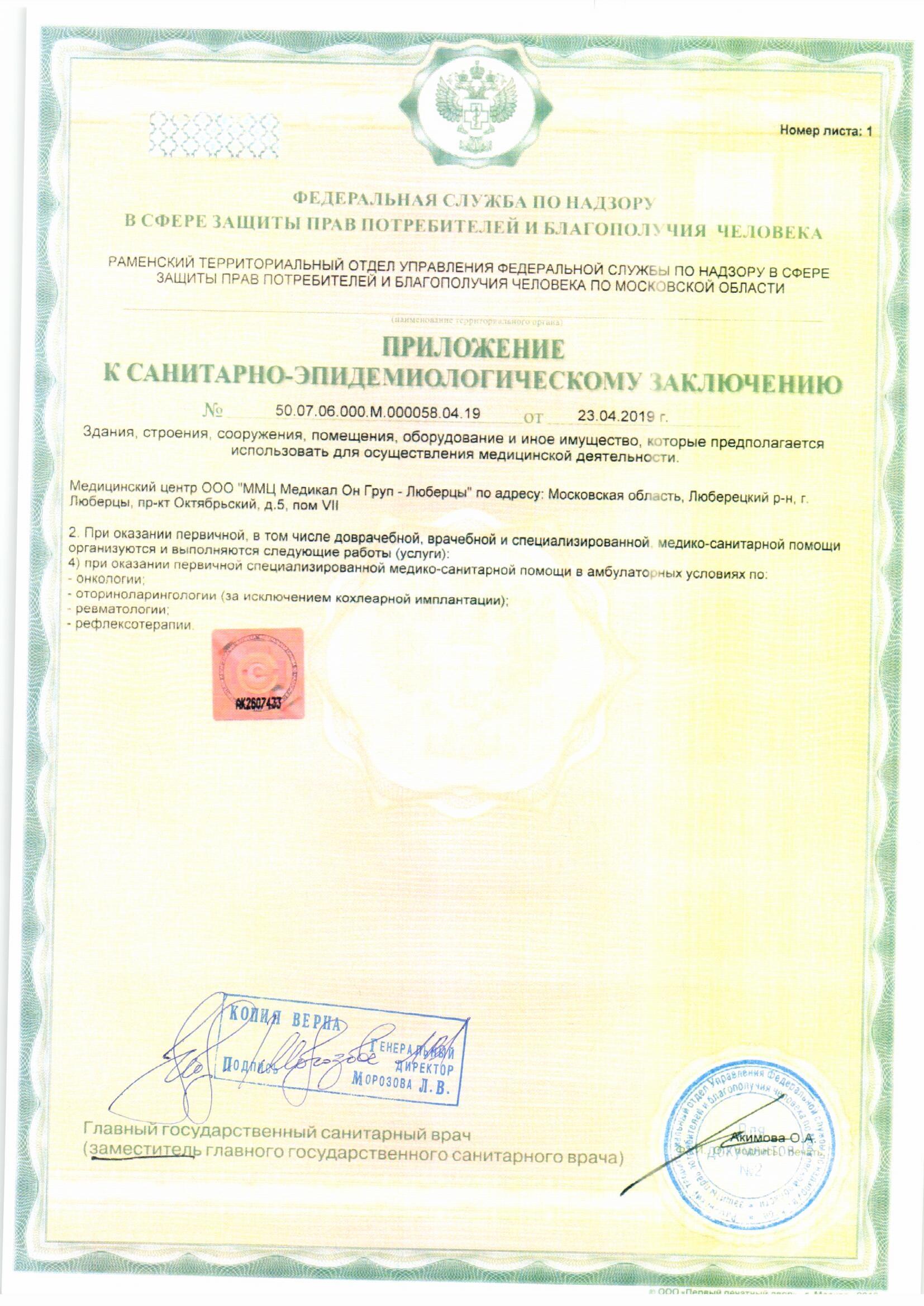 Л041-01162-50/00370283 от 22.01.2019 на осуществление медицинской деятельности, выданной Министерством Здравоохранения Московской Области.