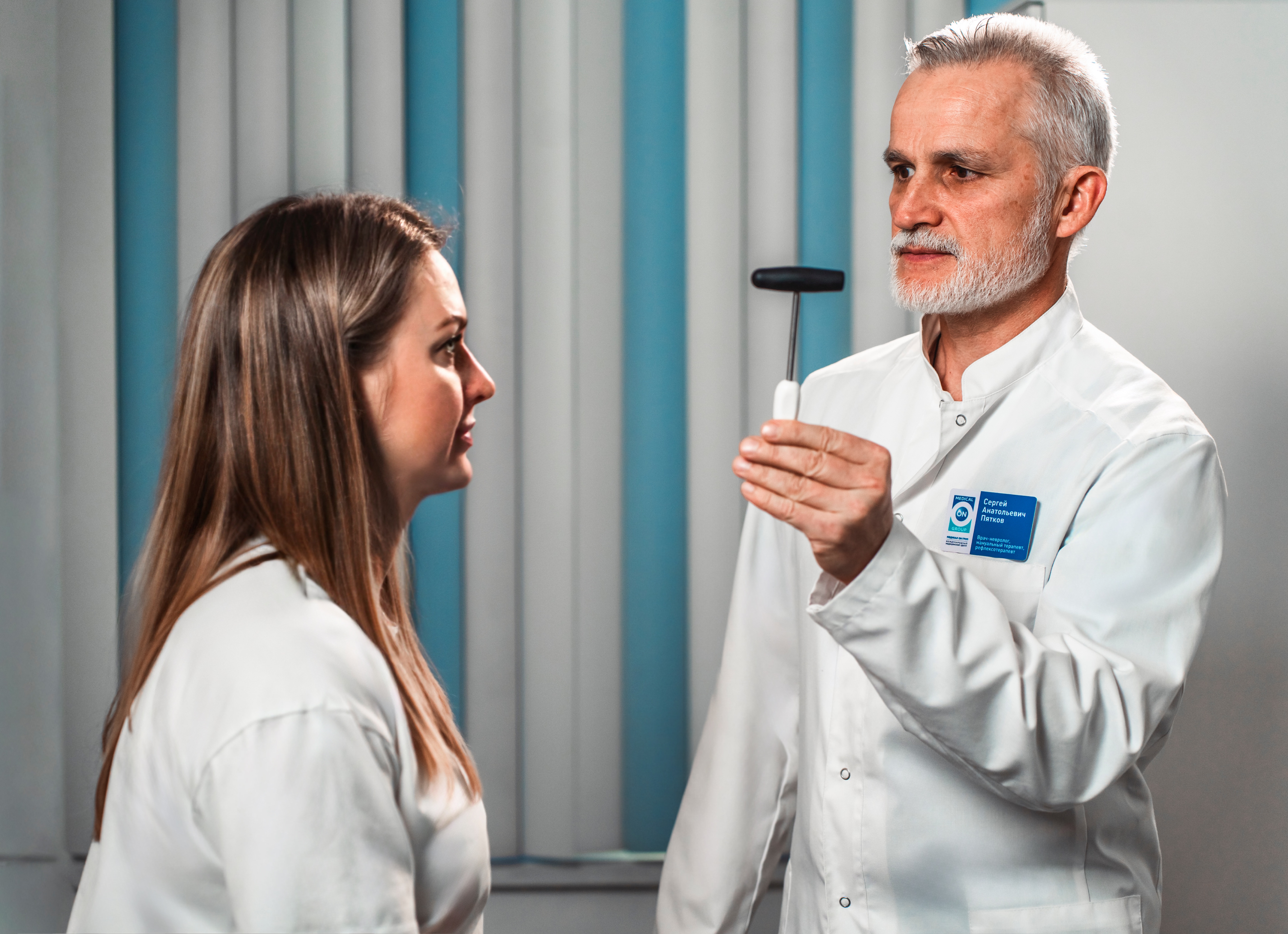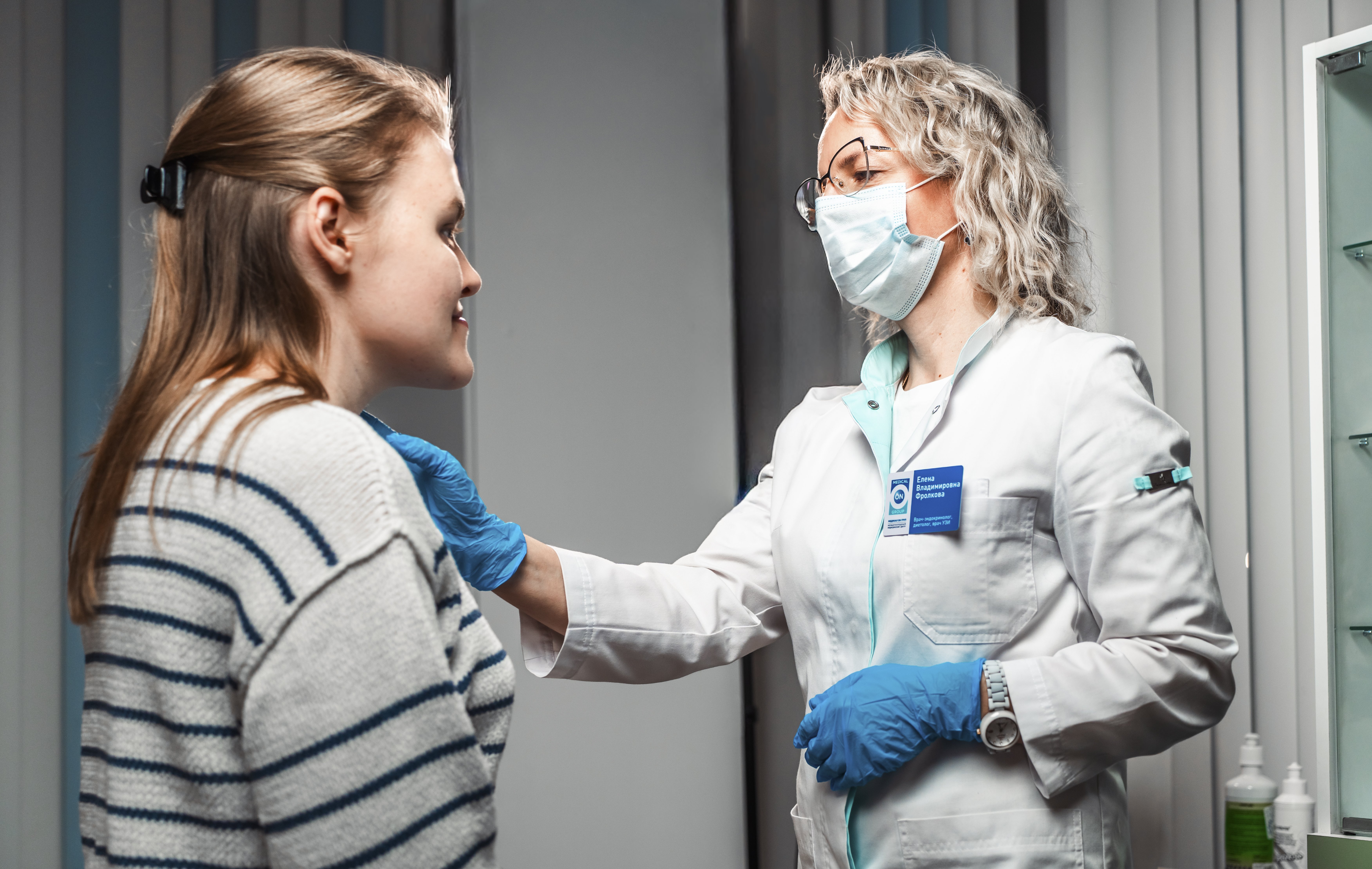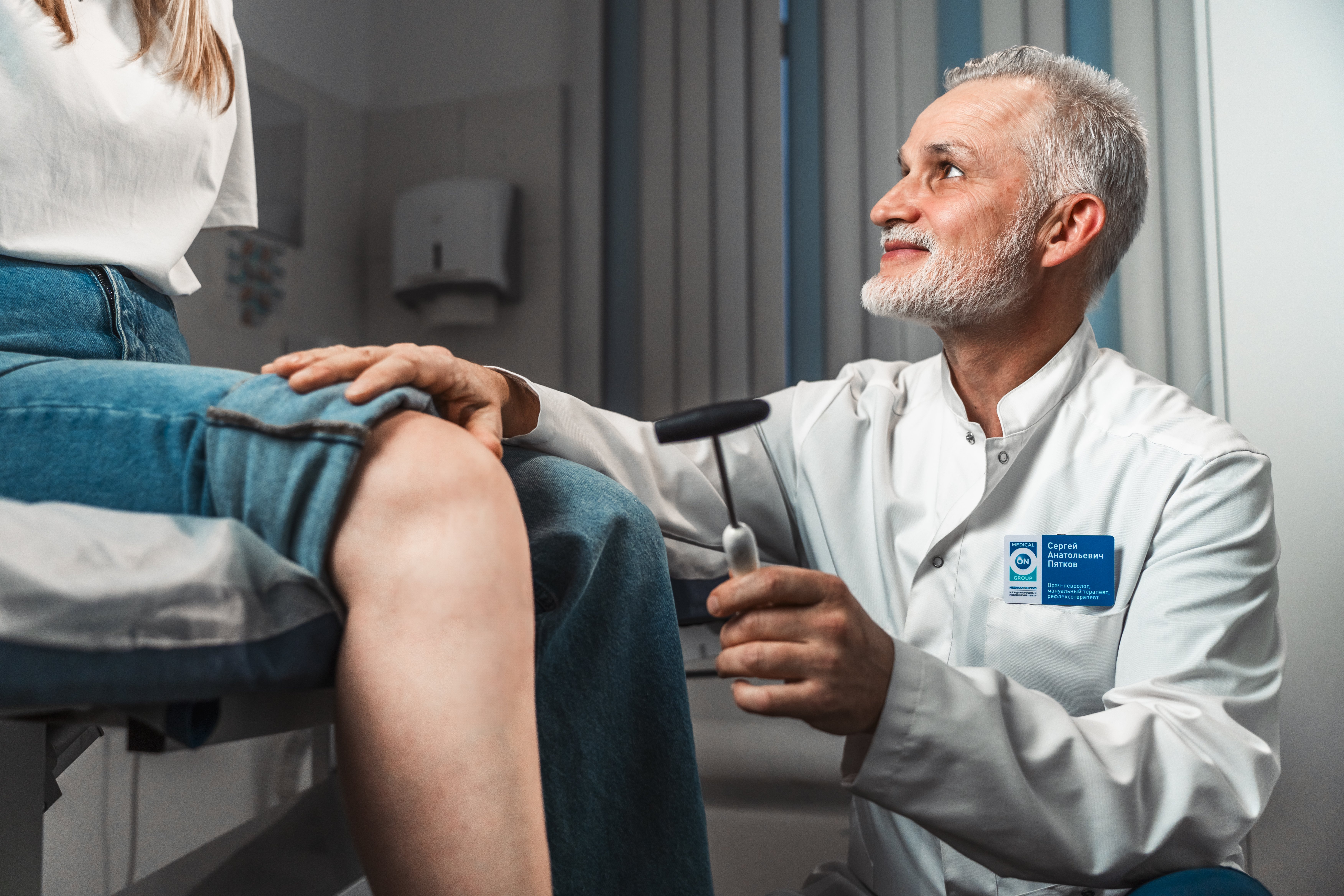 Врач сердечно-сосудистый хирург, флеболог, колопроктолог Кислицин А.Ю. выполняет ультразвуковое исследование вен нижних конечностей