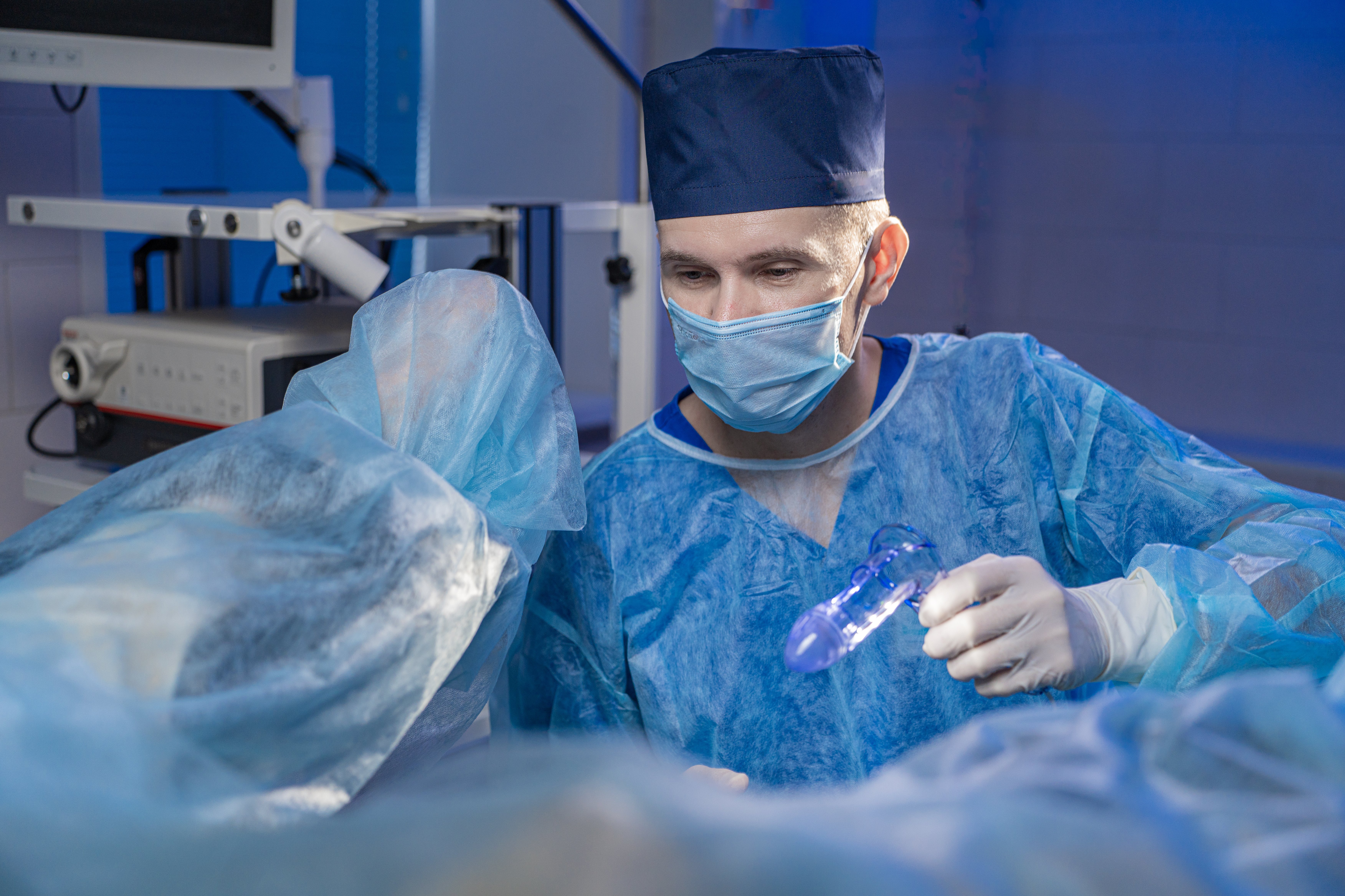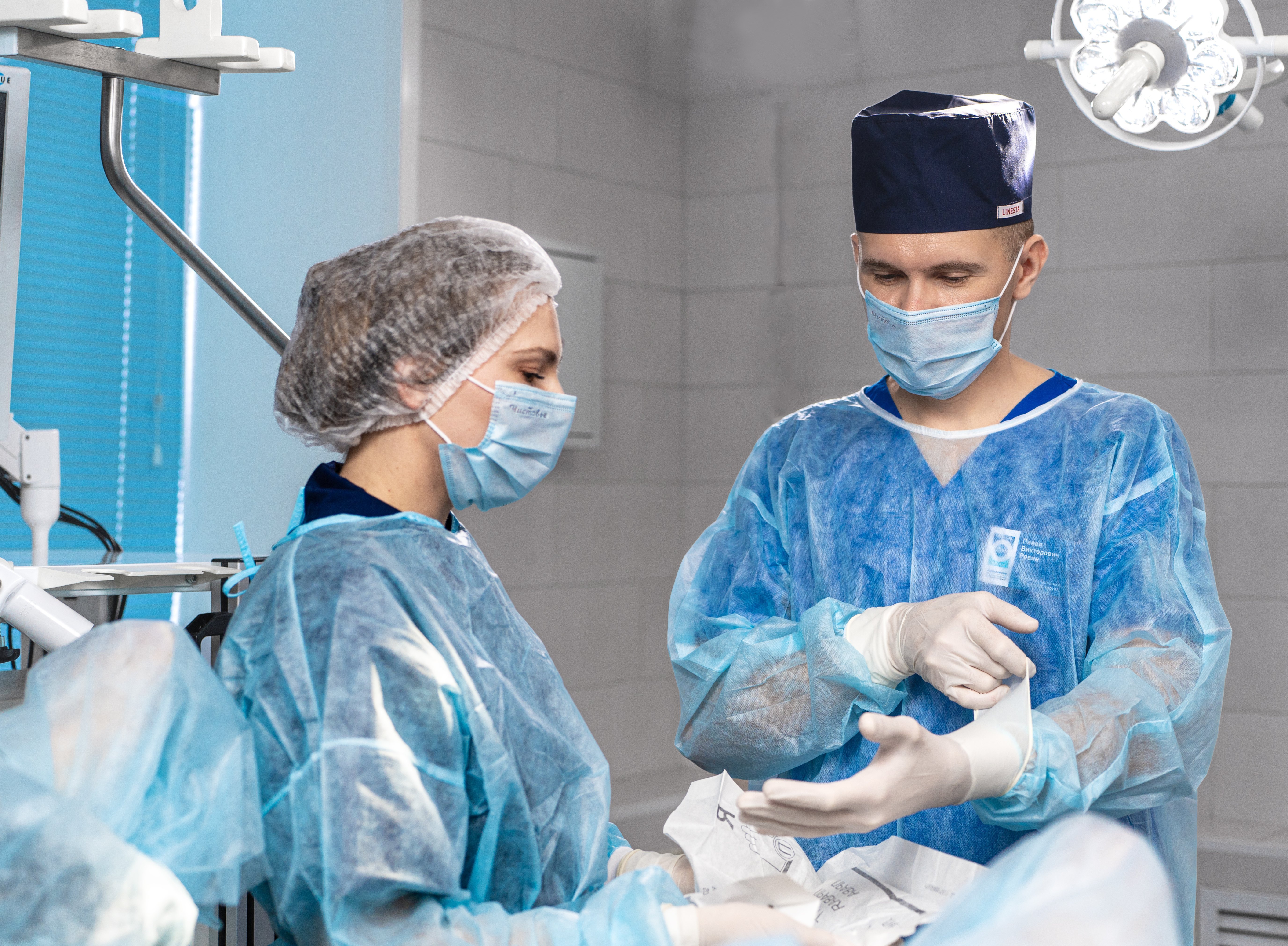 Ведущий врач-колопроктолог, хирург, главный врач клиники, кмн, Ревин П.В. выполняет колопроктологическую операцию